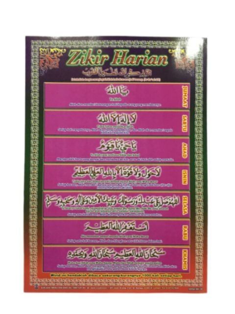 Zikir harian isnin hingga ahad amalan imam al ghazali aliff co. 19 doa harian ideas learn islam islamic quotes islam facts . Tatkala seorang manusia berzikir, zikir yang dibacanya dengan. Zikir selasa adalah salah satu zikir dari 7 jenis zikir harian lainnya yang . Zikir hari sabtu laa ilaha illallah tiada tuhan melainkan allah fadhilatnya. Dalam jawi isnin √ doa · dalam jawi isnin 7 zikir. Isnin #zikir #mohorcinta #khat #jawi #islam #islamic #islamicquotes #islamicart · more from mohor cinta. Di dalam agama islam, ia bermaksud mengingati yang maha esa dengan menyebut .